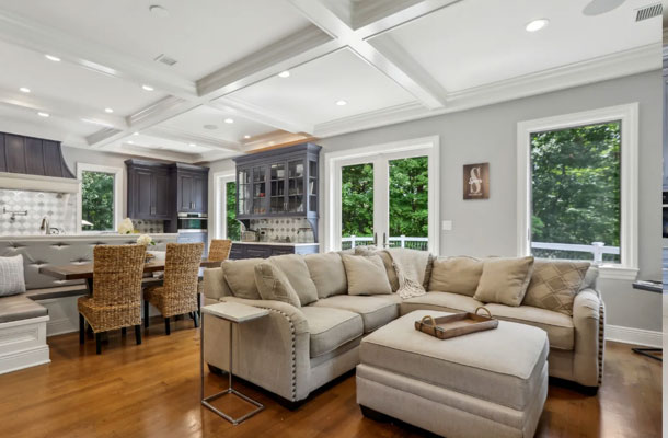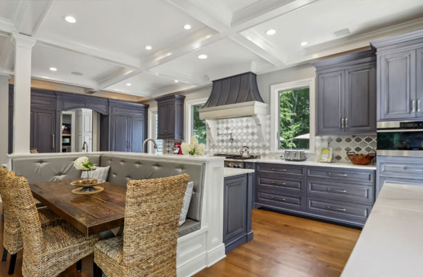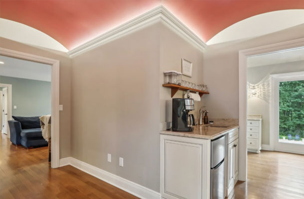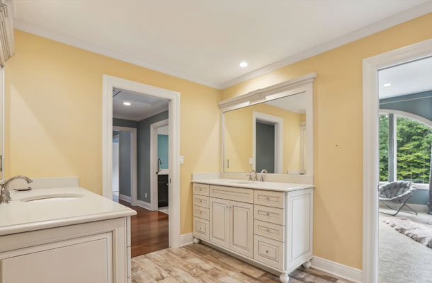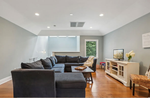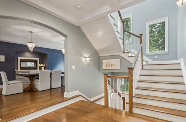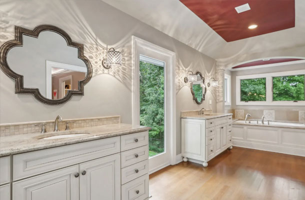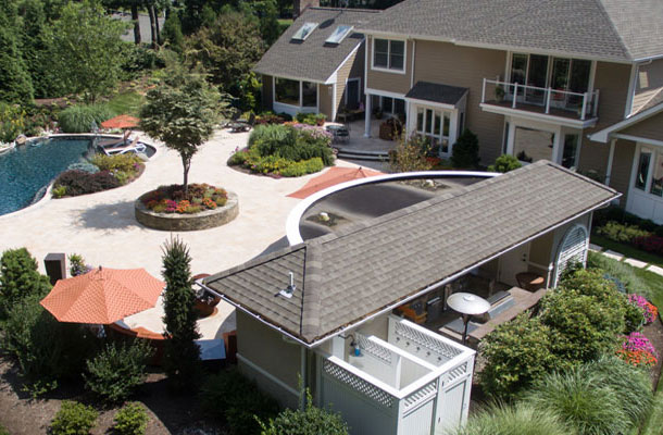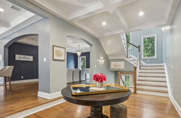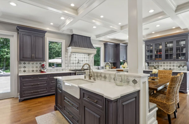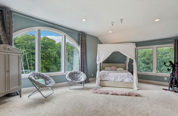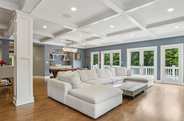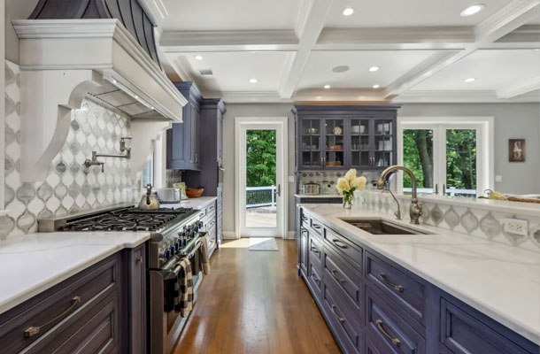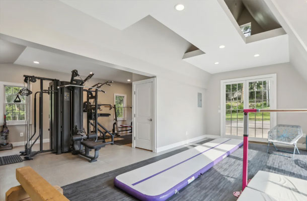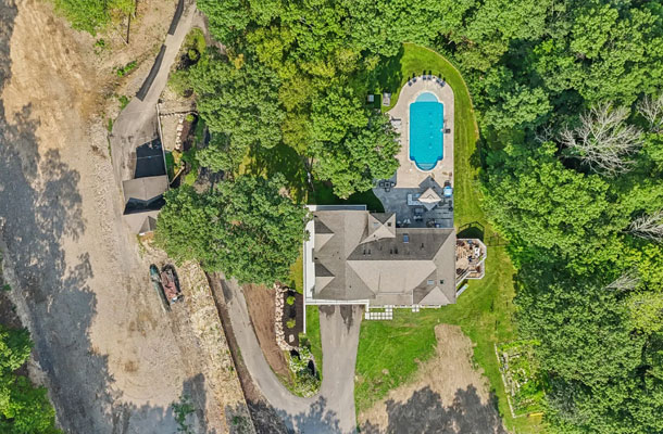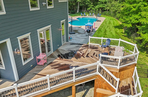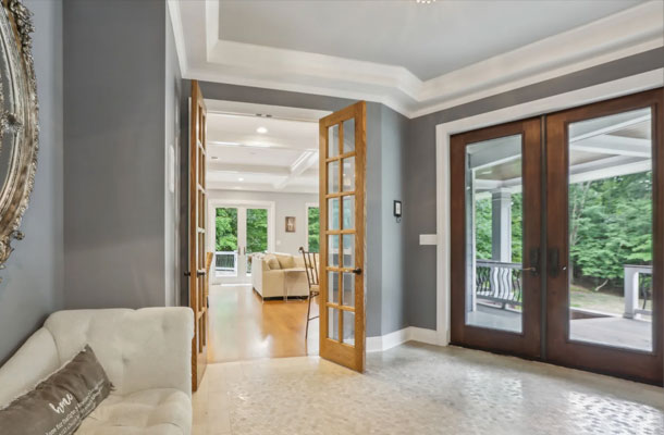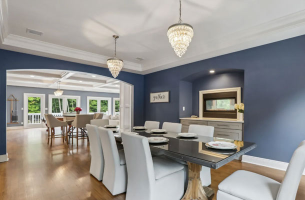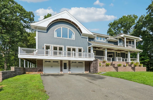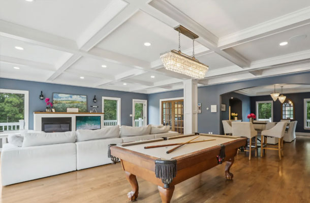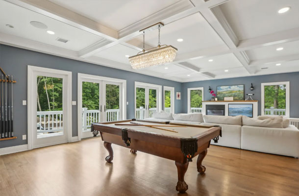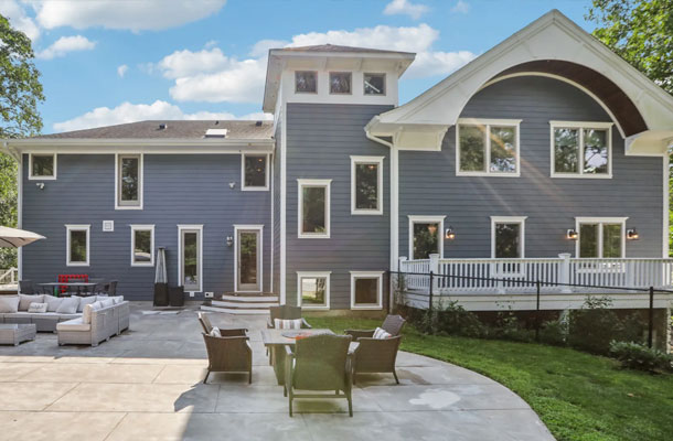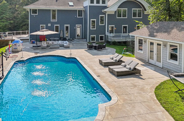 This bespoke Colonial featuring 5 bedrooms, 3.5 baths, 2 kitchens, theater, 4 car tandem garage, full wrap-around porch, custom pool and exercise cottage was built by Dynamic Contracting. The gracious first floor features a designer chef's eat-in kitchen and pantry, great room with wet bar and fireplace, and an office with a burn-through fireplace to an oversized dining room. The open floor plan, hardwood floors throughout, crawford ceilings and multiple french doors leading out to the wrap-around porch and patios provide for sun soaked, opulent entertaining perfection. The second floor presents an additional family room, three large bedrooms, an office and a primary wing complete with two custom walk-in closets, vaulted ceiling, private balcony, spa bathroom overlooking the pool and even a coffee bar. The walkout basement has a multi-generational living setup with a full kitchen, bedroom, laundry, full bath and living room with separate entrance and four car tandem garage. The exercise cottage features a vaulted ceiling with floor to ceiling windows, cushion matt flooring and its own heating/cooling systems.